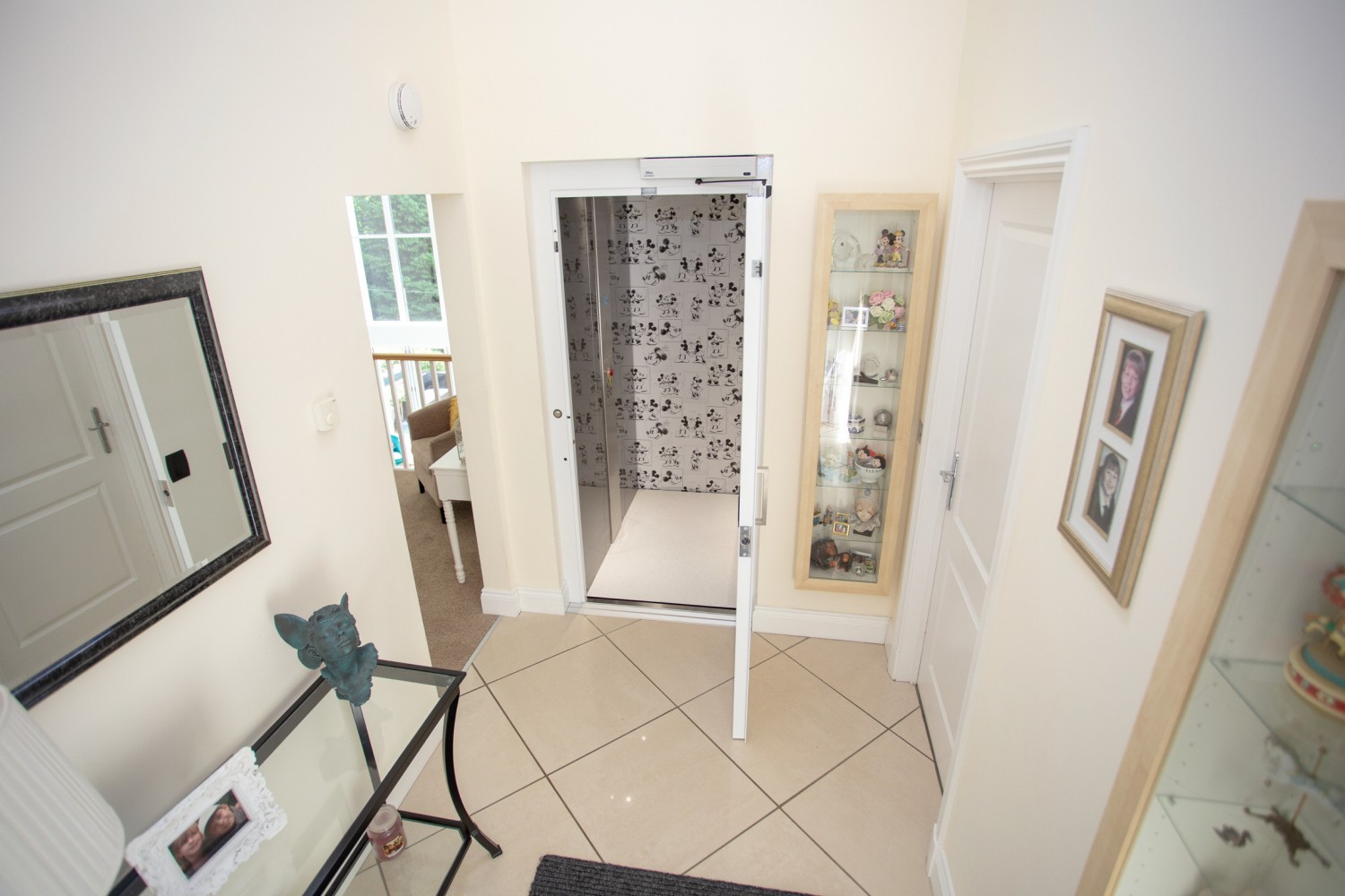 The home was stunning inside and out, and so we knew we needed to create a home lift that would compliment the decor and style of the home perfectly. We designed and installed the Access Hydraulic lift, with sat subtly behind a white door but featured a unique Disney-style back to suit the clients preferences.