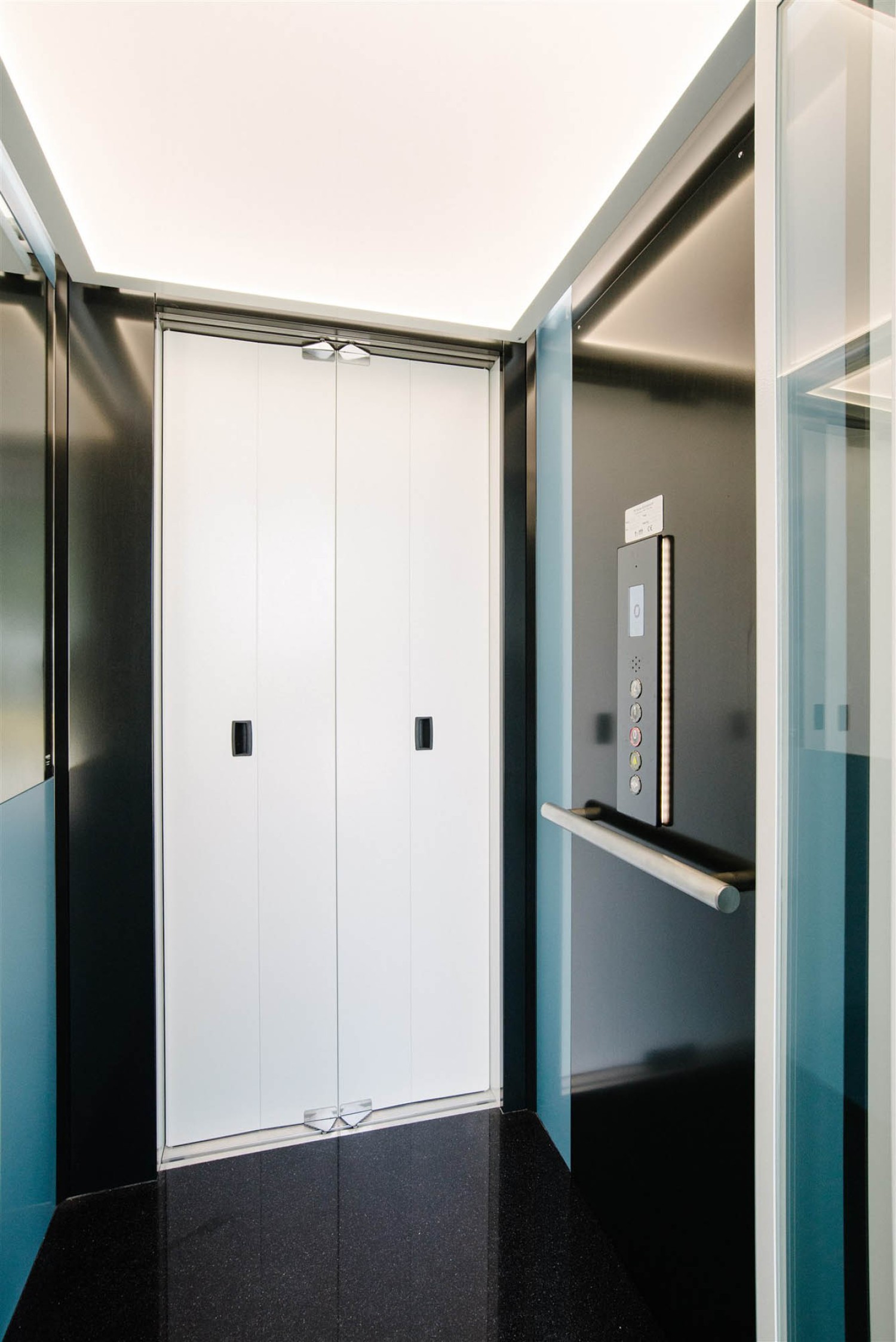 The homeowners provided us with drawings and following a discussion with them and the developers, we were able to produce a precise and fully customised Altura Platinum lift design that could best suit their requirements. This included a double-entry lift with the lift opening on opposite sides on each of the three floors. This lift was entirely bespoke to the property, designed to not only fit into the given space, but was also carefully customised to truly match and enhance the property. With a glass cabin doors to ensure full visibility of the stunning view despite the smaller-than-usual lift shaft, we also had to utilise swing doors on the landing to ensure that it would all fit seamlessly and provide optimal accessibility and ease of use for the homeowners.